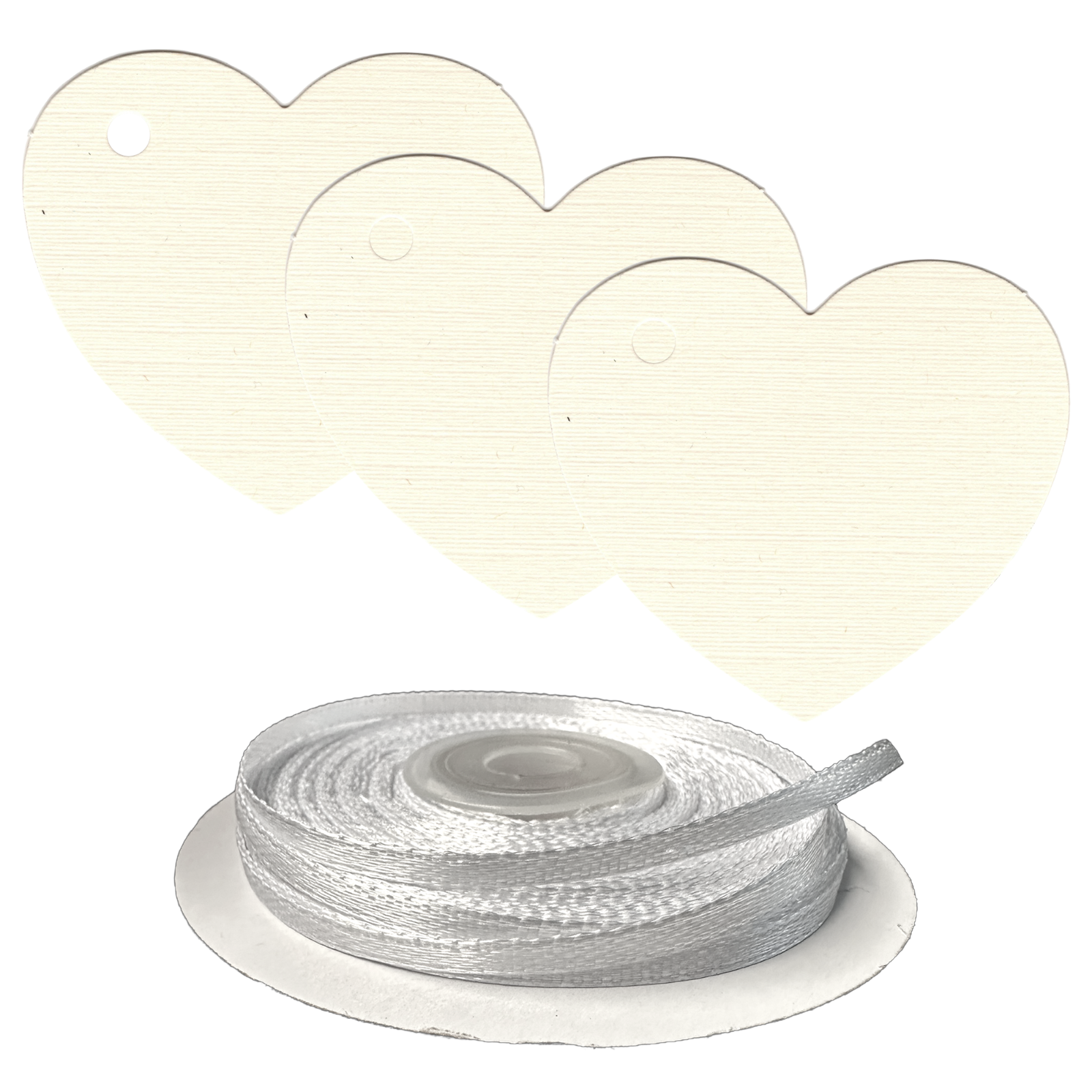 Crafted in a charming heart shape, our tags radiate warmth and sentiment. The 5mm hole, thoughtfully positioned, ensures effortless threading of the 3mm white satin ribbon, allowing you to add a tender touch to every creation.
