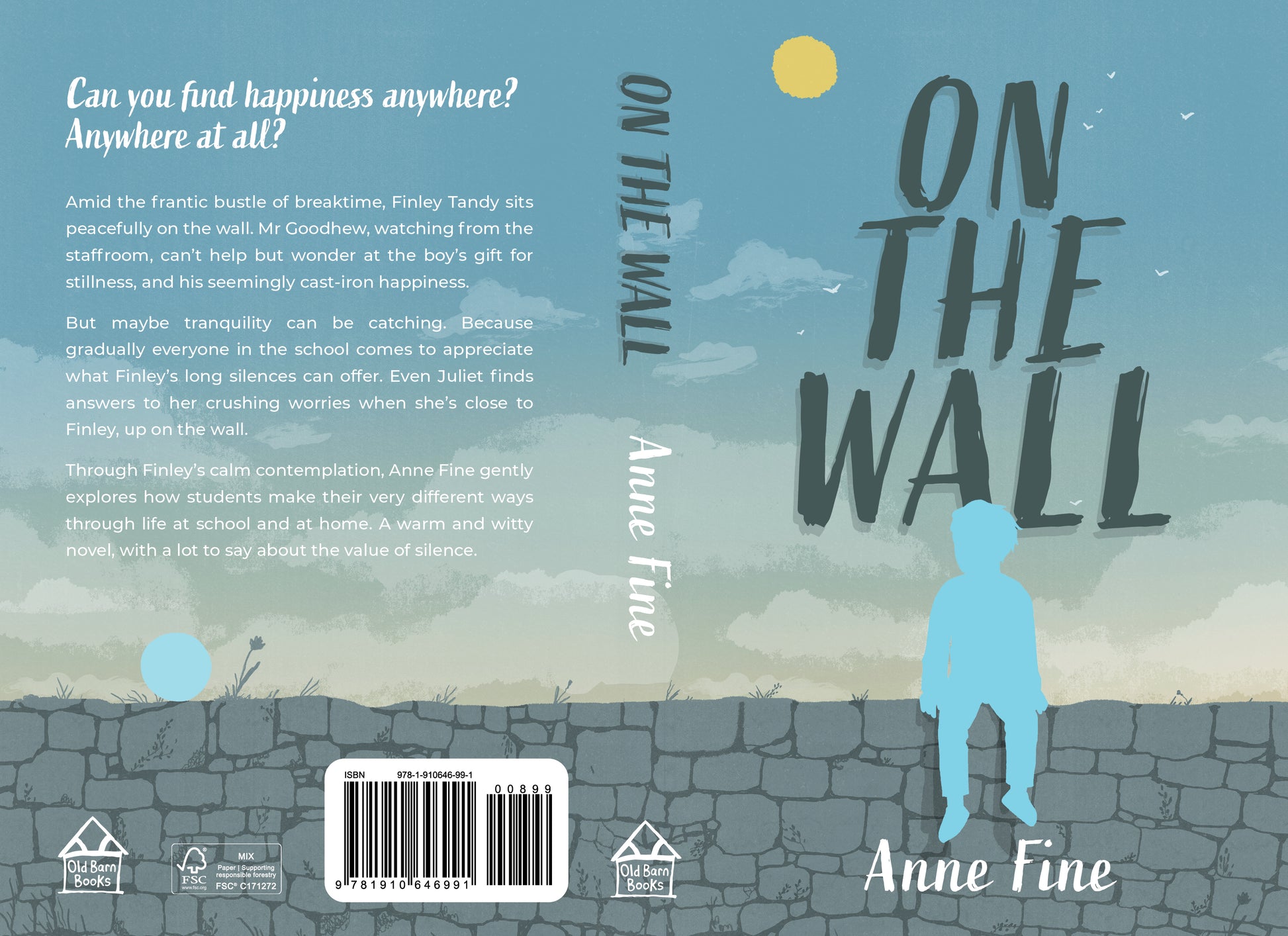 Finley's not worried about his first day at Windfields School. He tells his new teacher, Mr Goodhew, that he's happy "absolutely everywhere. And all the time." At breaktime, Finley sits alone on the old wall at the edge of the playground. At lunchtime, he does the same. So it goes on, for days and weeks. Finley's not lonely, though, and little by little the rest of the first year – and even their teachers – come to appreciate just what it is that Finley finds up there and how it can help them too.